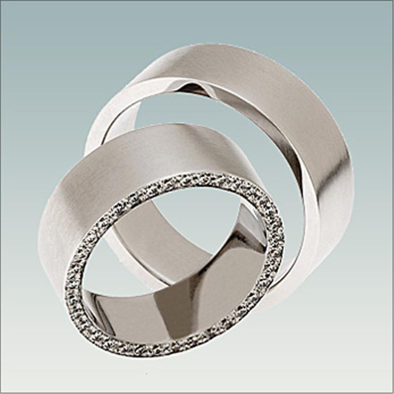 Poročna prstana model BN 151 sta široka 7 mm. Ženski prstan vsebuje 35 diamantov, ki so že všteti v ceno. Prstana lahko izdelamo v belem, rumenem ali rdečem zlatu.