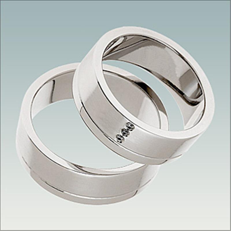 Poročna prstana model BN 156 sta široka 7 mm. Ženski prstan vsebuje tri diamante, ki so že všteti v ceno. Prstana lahko izdelamo v belem, rumenem ali rdečem zlatu.
