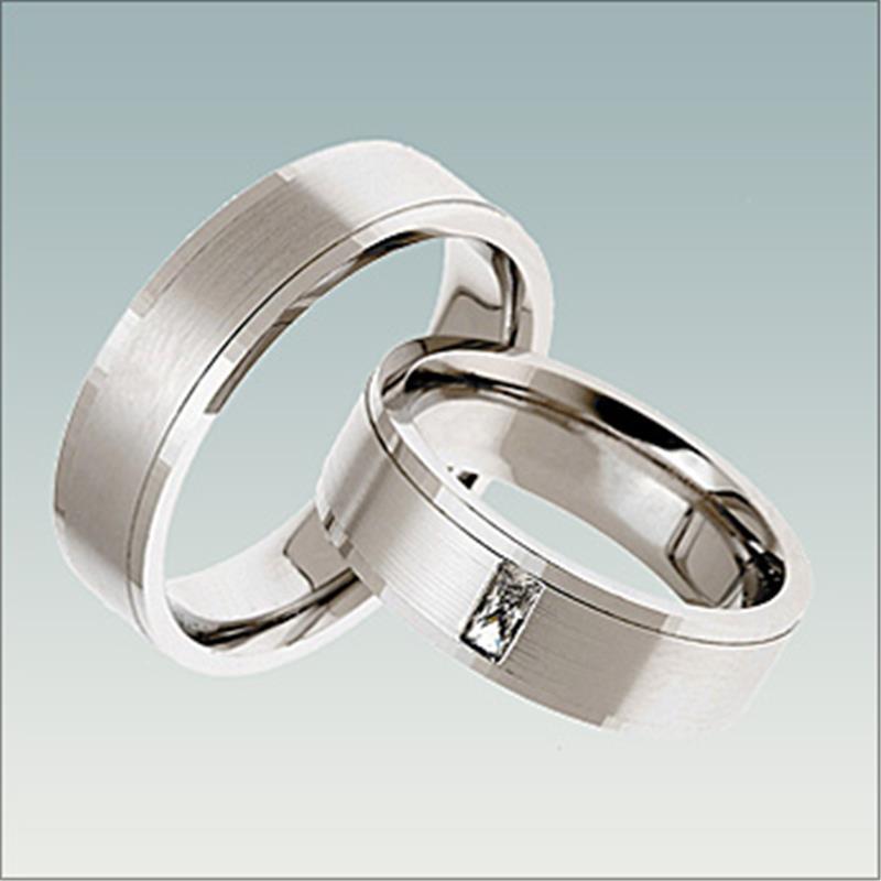 Poročna prstana model BN 172 sta široka 6 mm. Ženski prstan vsebuje en baguette diamant, ki je že vštet v ceno. Prstana lahko izdelamo v belem, rumenem ali rdečem zlatu.