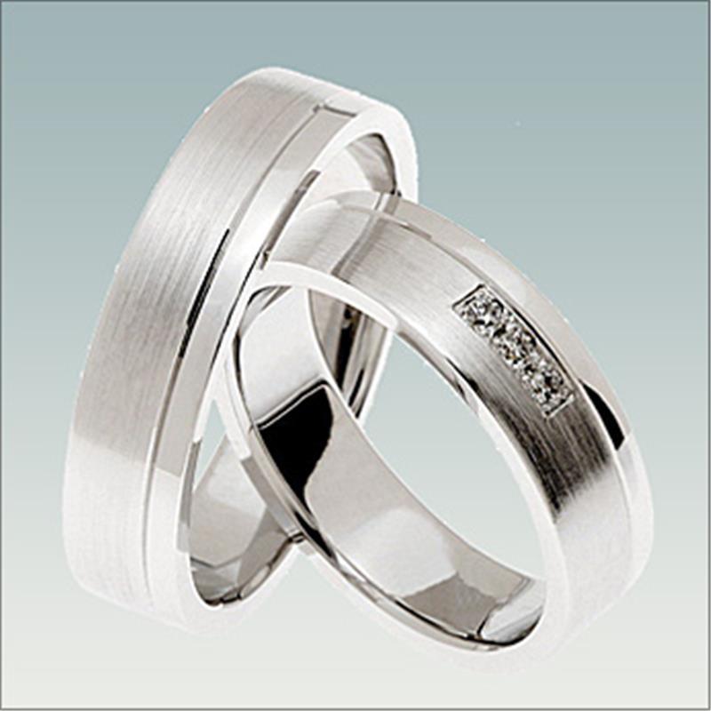 Poročna prstana model BN 216 sta široka 5 mm. Ženski prstan vsebuje tri diamante, ki so že všteti v ceno. Prstana lahko izdelamo v belem, rumenem ali rdečem zlatu.
