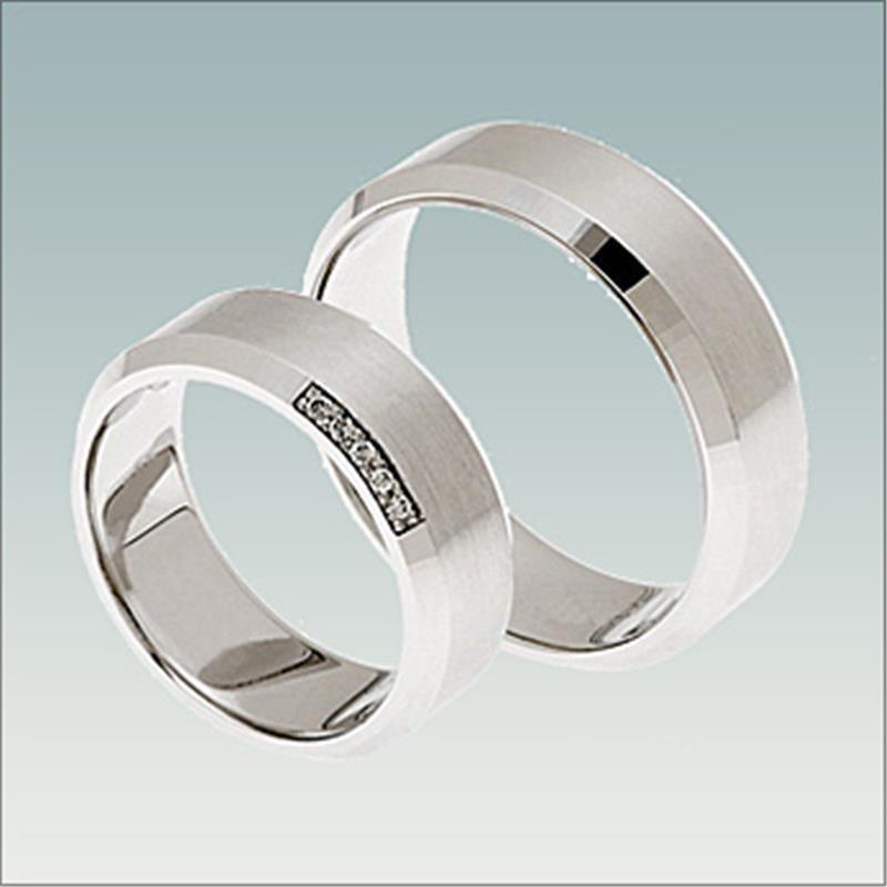 Poročna prstana model BN 234 sta široka 7 mm. Ženski prstan vsebuje pet diamantov, ki so že všteti v ceno. Prstana lahko izdelamo v belem, rumenem ali rdečem zlatu.