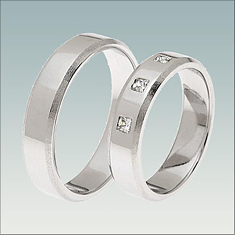 Poročna prstana model BN 250 sta široka 5 mm. Ženski prstan vsebuje tri diamante, ki so že všteti v ceno. Prstana lahko izdelamo v belem, rumenem ali rdečem zlatu.