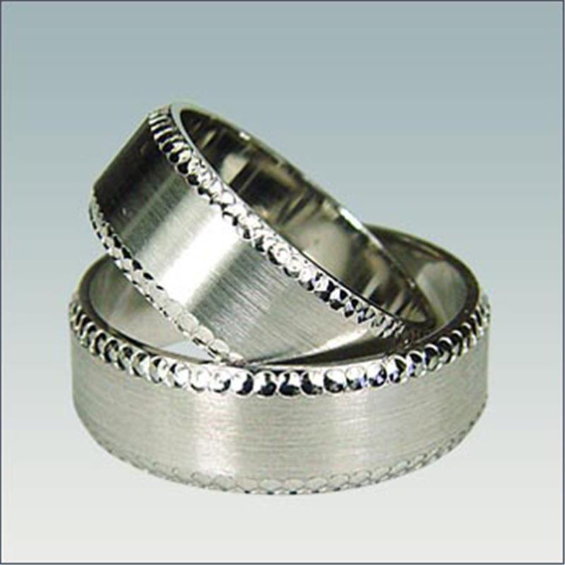 Poročna prstana model M 441 sta široka 7 mm. Lahko ju naročite v belem, rumenem ali rdečem zlatu. Izdelamo pa ju lahko tudi v ožji ali širši različici