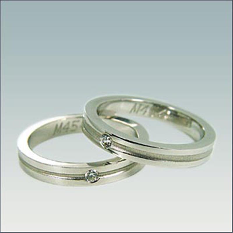 Poročna prstana model M 454 sta široka 3 mm. Ženski prstan vsebuje en diamant, ki je že vštet v ceno. Prstana lahko izdelamo v belem, rumenem ali rdečem zlatu.