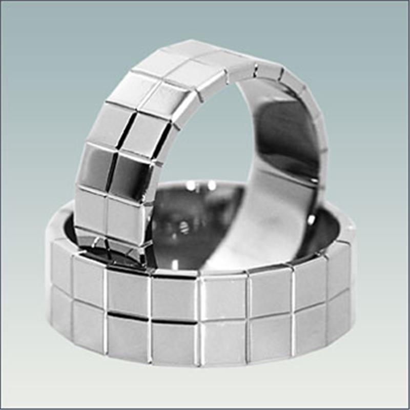 Poročna prstana model M 515 sta široka 7 mm. Lahko ju naročite v belem, rumenem ali rdečem zlatu. Izdelamo pa ju lahko tudi v ožji ali širši različici,vendar so v tem primeru kocke večje ali manjše.
