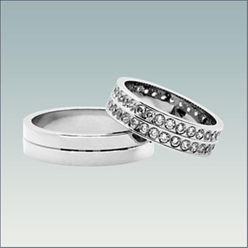 Poročna prstana model M 618 sta široka 5,5 mm. Ženski prstan vsebuje 60 diamantov, ki so že všteti v ceno. Prstana lahko izdelamo v belem, rumenem ali rdečem zlatu.