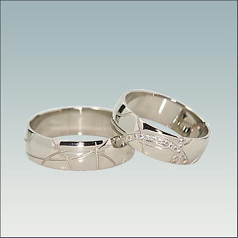 Poročna prstana model M 850 sta široka 6 mm. Ženski prstan vsebuje 18 diamantov, ki so že všteti v ceno. Prstana lahko izdelamo v belem, rumenem ali rdečem zlatu.