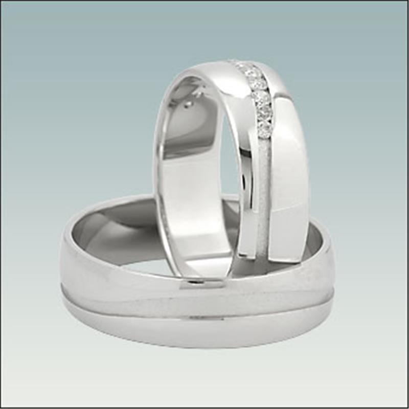 Poročna prstana model M 955 sta široka 6 mm. Ženski prstan vsebuje 11 diamantov, ki so že všteti v ceno. Prstana lahko izdelamo v belem, rumenem ali rdečem zlatu.