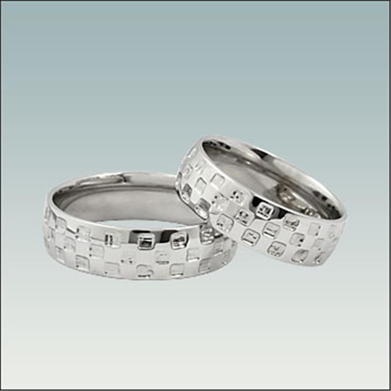 Poročna prstana model M 974 sta široka 6 mm. Lahko ju naročite v belem, rumenem ali rdečem zlatu.