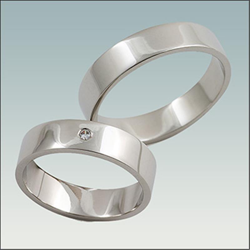 Poročna prstana model PB1 sta široka 5 mm. Ženski prstan vsebuje en diamant, ki je že vštet v ceno. Prstana lahko izdelamo v belem, rumenem ali rdečem zlatu.