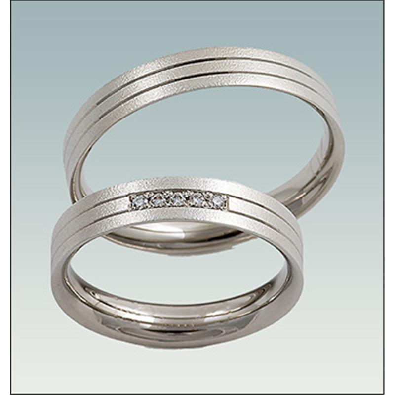 Poročna prstana model PB 20 sta široka 4 mm. Ženski prstan vsebuje pet diamantov, ki so že všteti v ceno. Prstana lahko izdelamo v belem, rumenem ali rdečem zlatu.