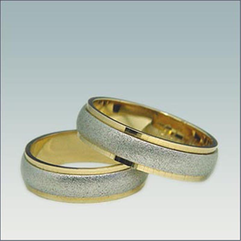 Poročna prstana model M 175 sta široka 6 mm. Lahko ju izdelamo v belo-rumeni ali belo-rdeči kombinaciji zlata.