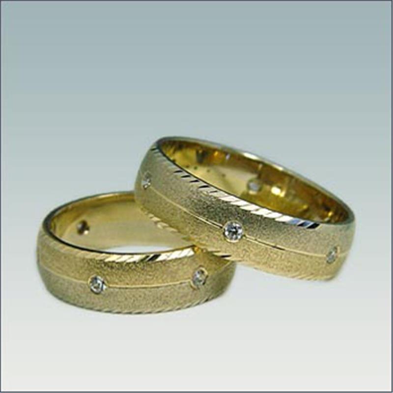 Poročna prstana model M 180 sta široka 6 mm. Ženski prstan vsebuje šest diamantov, ki so že všteti v ceno. Lahko ju izdelamo v belo-rumeni ali belo-rdeči kombinaciji zlata.