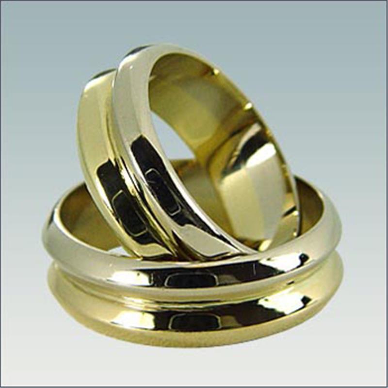 Poročna prstana model M 251 sta široka 7 mm. Lahko ju izdelamo v belo-rumeni ali belo-rdeči kombinaciji zlata.