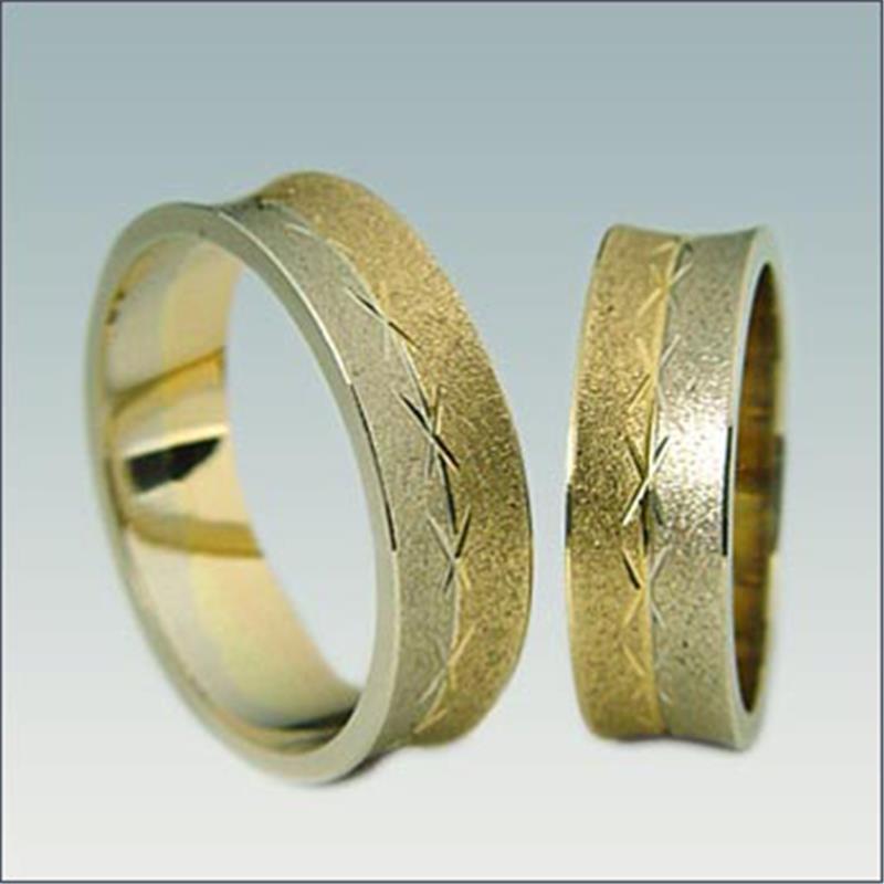 Poročna prstana model M 467 sta široka 6 mm. Lahko ju izdelamo v belo-rumeni ali belo-rdeči kombinaciji zlata.
