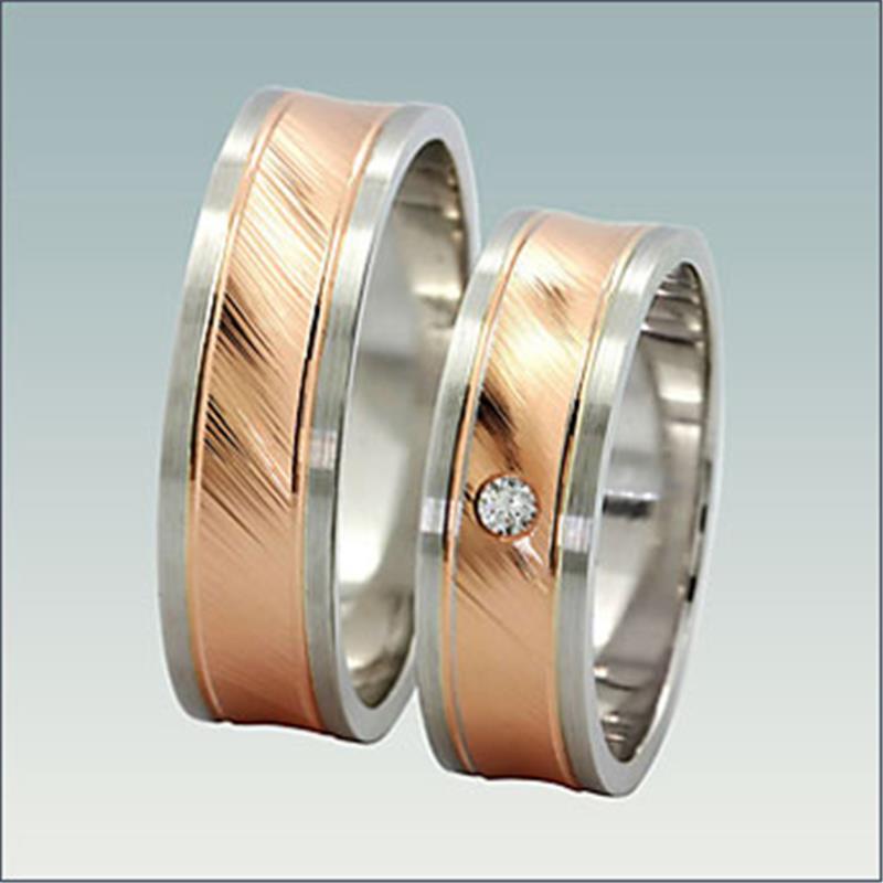 Poročna prstana model M 526 sta široka 6 mm. Ženski prstan vsebuje en diamant, ki je že všteti v ceno. Lahko ju izdelamo v belo-rdeči , belo-rumeni ali rumeno-rdeči kombinaciji zlata.