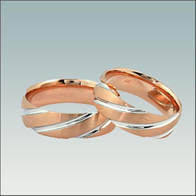 Poročna prstana model M 936 sta široka 6 mm. Lahko ju izdelamo v belo-rdeči ali belo-rumeni kombinaciji zlata in pa v ožji različici.