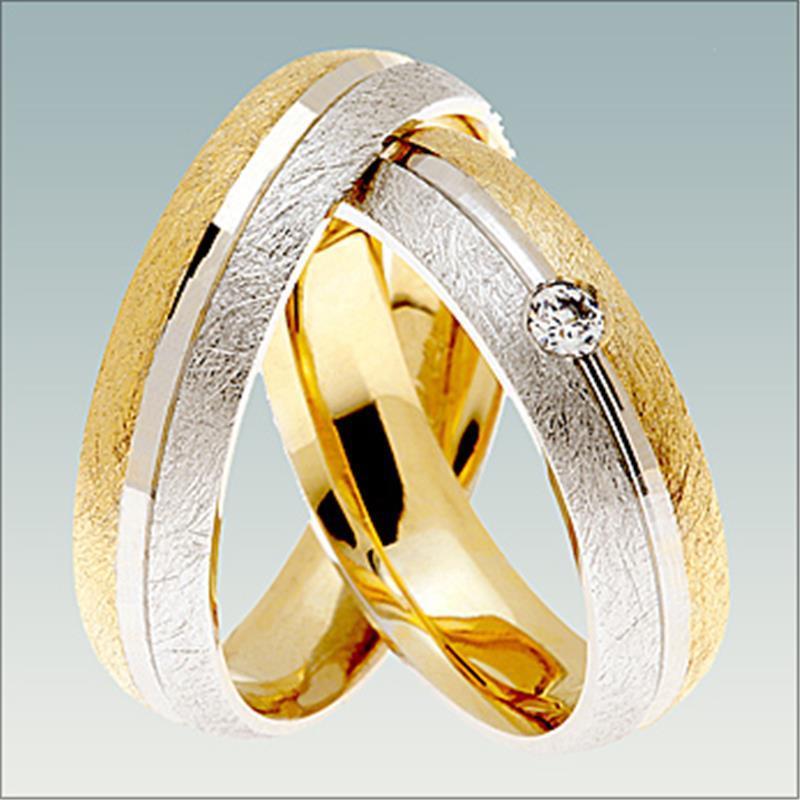 Poročna prstana model MN 124 sta široka 5 mm. Ženski prstan vsebuje en diamant, ki je že vštet v ceno. Lahko ju izdelamo v belo-rdeči ali belo-rumeni kombinaciji zlata.