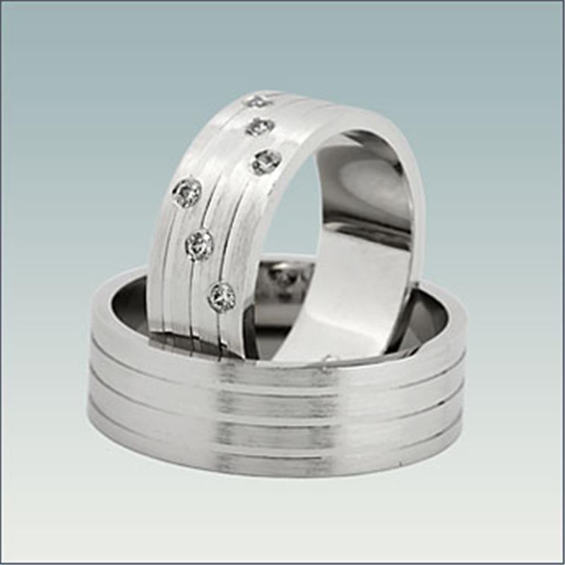 Poročna prstana model M 252 sta široka 7 mm. Ženski prstan vsebuje šest diamantov, ki so že všteti v ceno. Prstana lahko izdelamo v belem, rumenem ali rdečem zlatu.