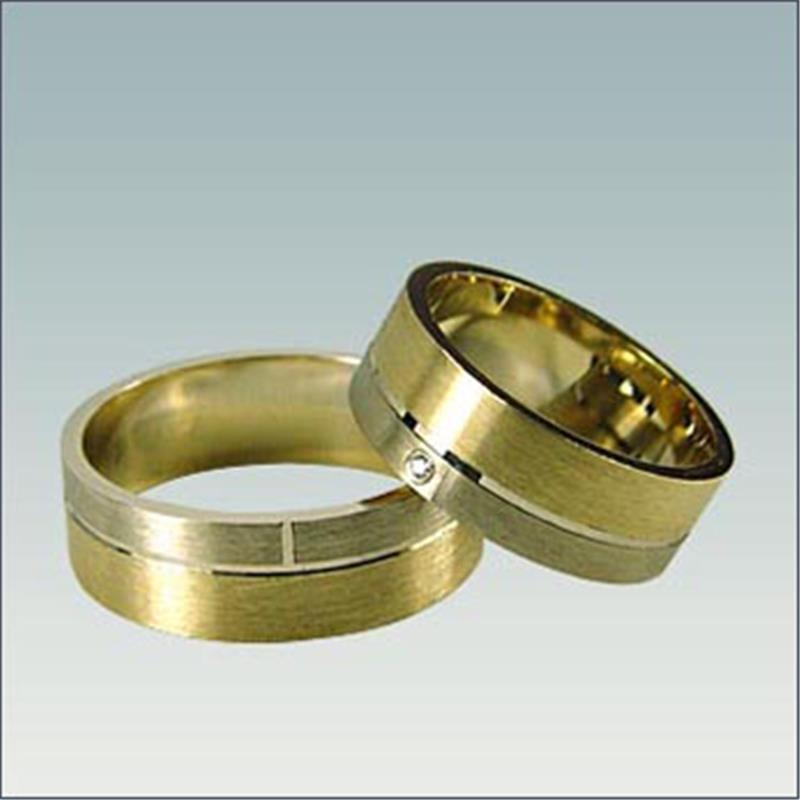 Poročna prstana model M 253 sta široka 7 mm. Ženski prstan vsebuje en diamant, ki je že vštet v ceno. Prstana lahko izdelamo v belem, rumenem, rdečem ali kombiniranem zlatu.