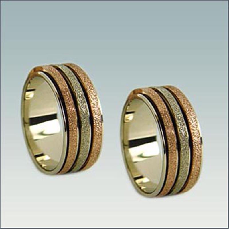 Poročna prstana model M 603 sta široka 7,7 mm. Oba prstana imata zgoraj tri vrtljive prstane. Prstana lahko izdelamo v belem, rumenem, rdečem ali kombiniranem zlatu.