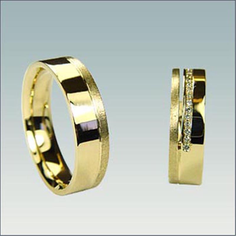 Poročna prstana model M 610 sta široka 6 mm. Ženski prstan vsebuje 21 diamantov, ki so že všteti v ceno. Prstana lahko izdelamo v belem, rumenem ali rdečem zlatu