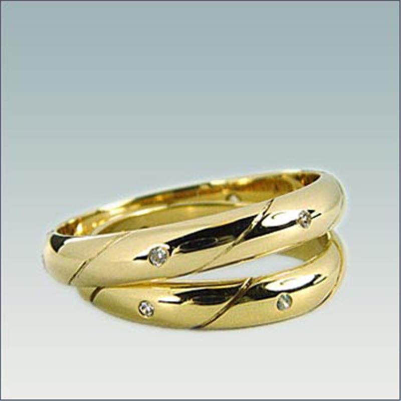 Poročna prstana model M 130 sta široka 4 mm. Ženski prstan vsebuje šest diamantov, ki so že všteti v ceno. Prstana lahko izdelamo v rumenem, belem ali rdečem zlatu.